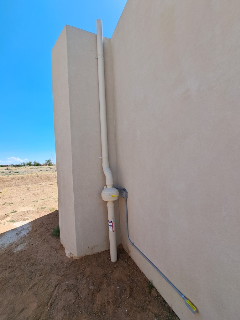 A radon mitigations system can be installed to divert radioactive gases from below to safely release them above the home. Here are images from some of Safe At Home’s previous mitigations: